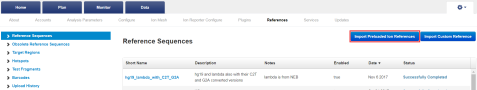 Validated reference sequence genome files suitable for use with Torrent Suite™ Software are preloaded on the Ion Torrent™ Server. These reference files can be easily imported into the software using this procedure. After you import the reference genome file, the references can enabled for use in Planned Runs and data analysis.