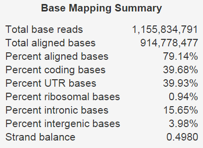 Base Mapping Summary—A summary of base reads aligned to genetic features of an annotated reference.