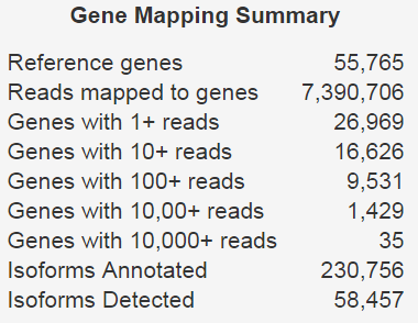 Gene Mapping Summary—A summary of reads mapped to genes of annotated reference.