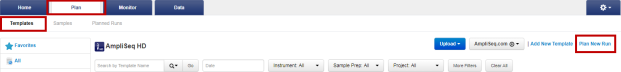 - In the Plan tab, in the Templates screen, click Plan New Run.