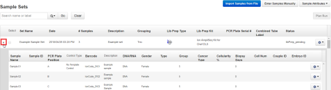Click the arrow in the row of the Sample Set to expand the table and view all samples within the Sample Set.