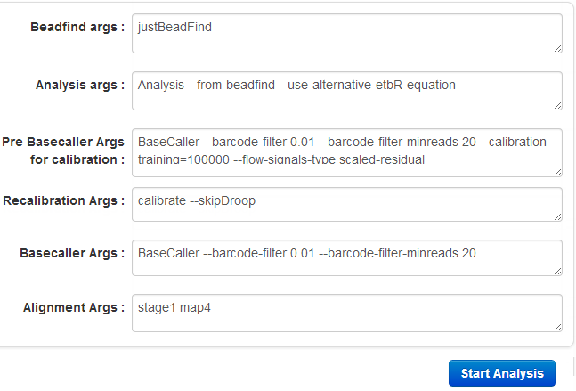 Analysis command line arguments. These arguments should not be modified unless instructed by Ion Torrent™ Technical Support. |