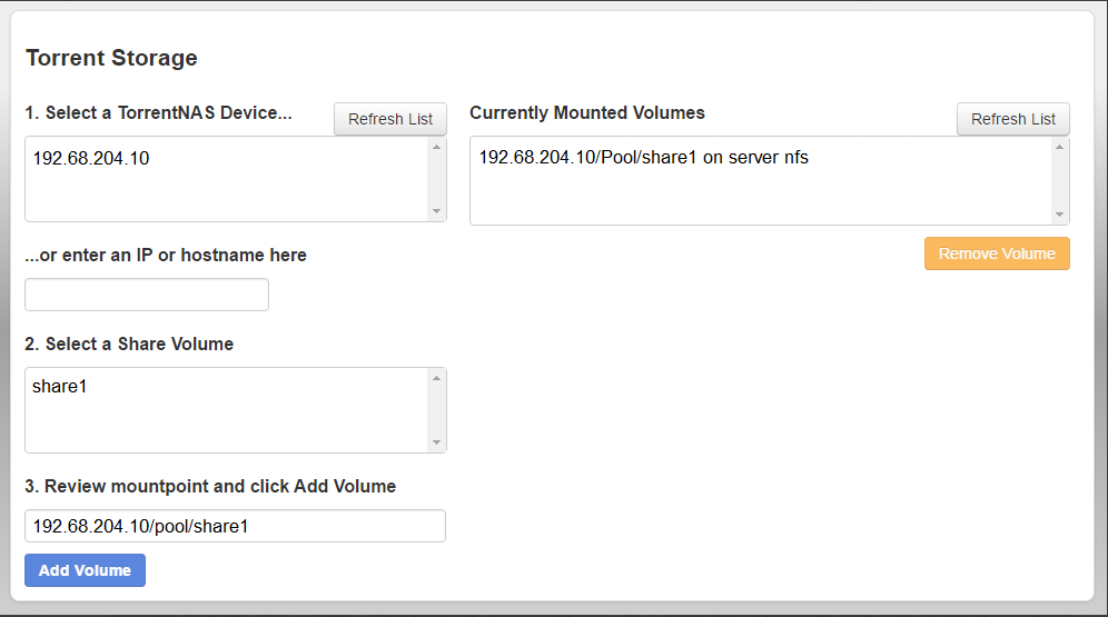 - In Select a Share Volume, select a volume on the device, then click Add Volume.