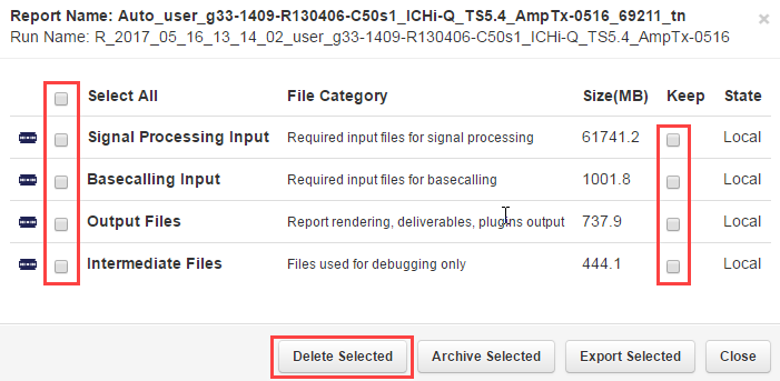 An administrator can manually delete select data from a run report to free up storage space on the Ion Torrent™ Server. This procedures deletes the files that are associated with the run report that were created during the run. These file types are: