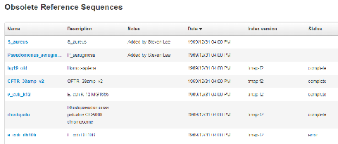 A reference sequence becomes obsolete and is listed in the Obsolete References Sequences table after Torrent Suite™ Software is updated with a release that includes a new TMAP index.