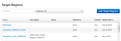 Available target regions files are listed in the Target Regions table.
