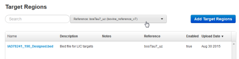 You can upload target regions files for use with a specific reference sequence. After target regions files are uploaded, the files are available when the related reference sequence is selected for use in a Planned Run. When you select a target regions file in run planning, the sequencing run results are restricted to the regions of the reference sequence that is specified in the target regions file.