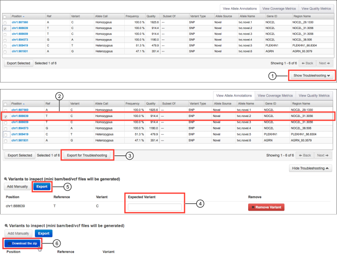 Torrent Suite™ Software includes a tool that helps you determine why variant calls are unclear in analyses. You can use the Slicer tool to select one or more variant calls, then export the related data as miniature BAM, BED, and VCF files. You can then share these files with a field bioinformatics specialist for further review.