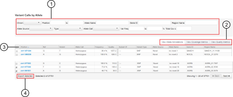 Find the variants of interest by applying filters to the table to narrow down the list of variants called.