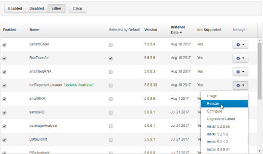 If you uninstalled and reinstalled a plugin, you can rescan the plugin to ensure that all files from the previous installation were removed. When you rescan a plugin, the files for the plugin are updated with any changes.