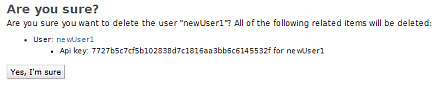 Ensure that you want to delete the user by clicking Yes, I'm sure.